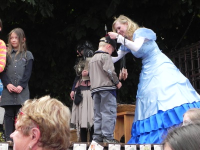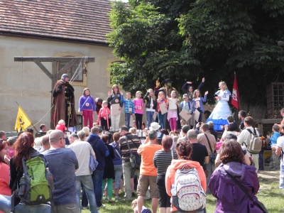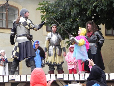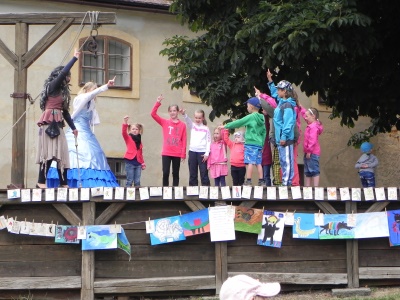 Ve tři hodiny odpoledne pak probíhalo slavnostní pasování Ochránců starohradských pohádek, tedy dětí, které se zúčastnily Velké pohádkové soutěže a poslaly nám obrázky nejrůznějších pohádkových bytostí.